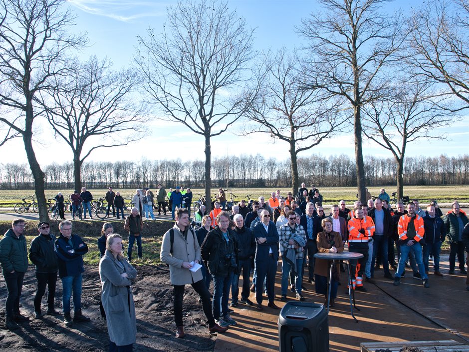 Afgelopen maandag 2 maart is bij Nieuw-Schoonebeek project Buffer Zuid officieel van start gegaan. Onder leiding van Nynke Houwing werd het startsein gegeven door Gerard Meijers van provincie Drenthe, wethouder Pascal Schrik van gemeente Emmen en Wilbert Siebring van waterschap Vechtstromen. Op de kruising van de Anwenning en de Kerkenweg vertelden zij over hun betrokkenheid bij het unieke natuurgebied Bargerveen.